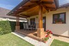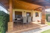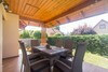 Von der überdachten Terrasse die mit Gartenmöbeln ausgestattet ist, gelangt man in einen hellen Flur und von dort aus in den gemütlichen, offenen Wohnbereich.