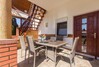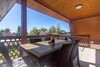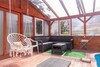 Über eine Außentreppe von der Terrasse der Erdgeschosswohnung aus, erreicht man das Dachgeschoss. Hier finden Sie eine geräumige, überdachte Terrasse mit modernen Gartenmöbeln. Von hier aus gelangt man in die Wohnküche.